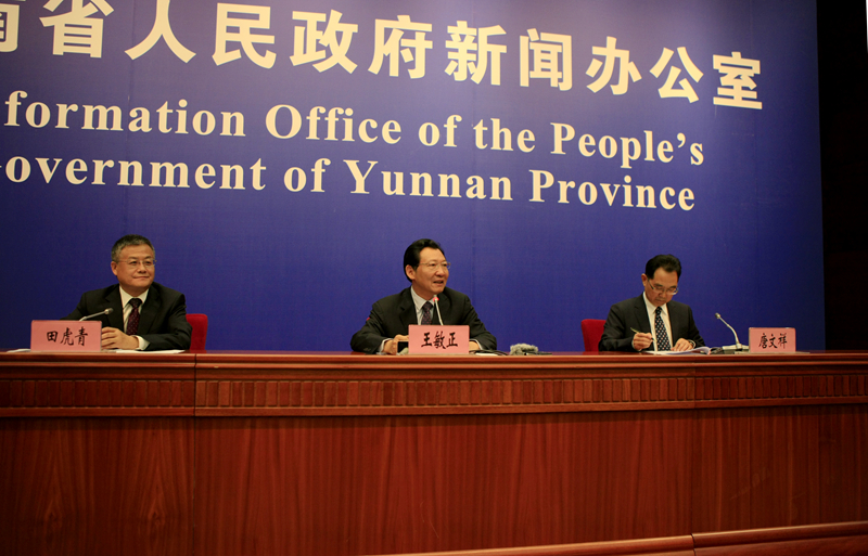 云南省人民政府新聞辦公室專職副主任田虎青主持發(fā)布會,云南省打造世界一流“綠色食品牌”工作領(lǐng)導(dǎo)小組辦公室主任、省委農(nóng)辦主任、省農(nóng)業(yè)廳廳長王敏正,云南省工業(yè)和信息化委員會副書記、副主任唐文祥分別發(fā)布新聞。
