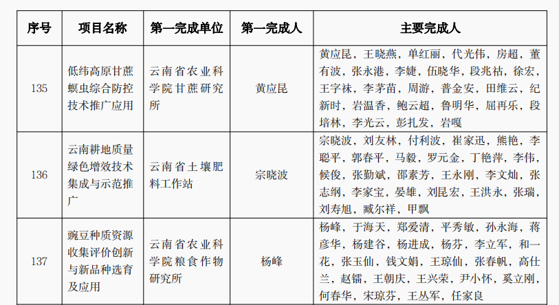 授予“湖南省早稻集中育秧技術(shù)推廣”等81個項(xiàng)目為農(nóng)業(yè)技術(shù)推廣成果獎一等獎,“循環(huán)水工程化智能化養(yǎng)殖關(guān)鍵技術(shù)示范應(yīng)用與推廣”等160個項(xiàng)目為農(nóng)業(yè)技術(shù)推廣成果獎二等獎,“河西肉牛生態(tài)健康養(yǎng)殖技術(shù)集成與示范”等160個項(xiàng)目為農(nóng)業(yè)技術(shù)推廣成果獎三等獎;授予吉林省伊通滿族自治縣景臺鎮(zhèn)綜合服務(wù)中心鄭立晨等500人農(nóng)業(yè)技術(shù)推廣貢獻(xiàn)獎;授予“大豆-玉米帶狀復(fù)合種植技術(shù)模式集成創(chuàng)新與示范推廣”等20個項(xiàng)目為農(nóng)業(yè)技術(shù)推廣合作獎(獲獎名單詳見附件)。
